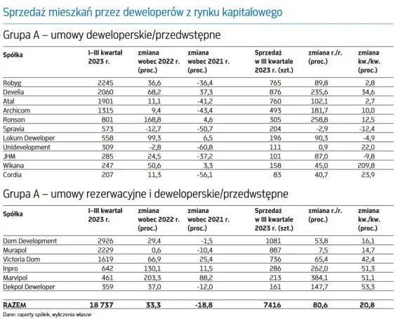 - Śmiało można stwierdzić, że zarówno rosnąca sprzedaż jak i rosnące ceny były efektem działania rządowego programu „Pierwsze mieszkanie”, którego częścią jest „Bezpieczny kredyt”. Ponieważ program ten jednak nie zawierał jakichkolwiek zachęt skierowanych do podażowej strony rynku, wydaje się, że kurcząca się oferta lokali może być również traktowana jak efekt działania tego programu – mówi Kuniewicz. - Wraz z rozstrzygnięciem wyborów parlamentarnych i płynącymi z banków informacjami o wyraźnie przekraczającej rządowe prognozy liczbie wniosków kredytowych złożonych w ramach „Bezpiecznego kredyt”, uzasadnione jest pytanie czego można się spodziewać w najbliższych miesiącach. Analizując dane z bieżącego badania rynku deweloperskiego realizowanego na potrzeby Otodom Analytics możemy stwierdzić, że popyt na mieszkania nie słabnie, choć gdyby wnioskować na podstawie wyników sprzedaży z połowy października - rekordu nie będzie. Wiele wskazuje na to że ostatni kwartał 2023 r. będzie nieznacznie gorszy pod względem sprzedaży od bardzo dobrego III kwartału, ale w kontekście dynamicznie rosnących cen mieszkań i niskiej oferty taki wniosek nie może zaskakiwać. Jeśli dodatkowo zrealizują się - najłatwiejsze do wprowadzenia w krótkim czasie - obietnice wyborcze opozycji, to rosnące dynamicznie od kilku miesięcy ceny mieszkań, mogą rosnąć jeszcze szybciej – dodaje.