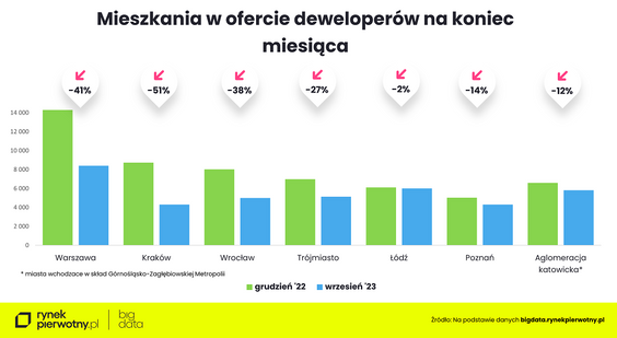 Tłumaczy, że „połączenie tych grup popytowych” dało piorunujący efekt. Z danych BIG DATA RynekPierwotny.pl wynika, że w trzecim kwartale sprzedaż nowych mieszkań w siedmiu największych metropoliach była aż o 35 proc. wyższa niż w drugim kwartale. W porównaniu z pierwszym kwartałem popyt wzrósł o 17 proc.
