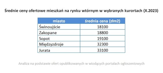 Zaznacza, że najwyższe ceny wbrew przekonaniu wielu osób wcale nie obowiązują w stolicy. - O ile apartamenty premium są wyceniane w Warszawie na zawrotne kwoty – nawet na ponad 60 tys. zł za metr, o tyle średnia cena ofertowa dla całego warszawskiego ryku wtórnego, to "zaledwie" 16,9 tys. zł za metr. Wyżej są wyceniane mieszkania i apartamenty w popularnych polskich kurortach.