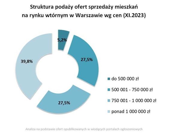 - Z najnowszej analizy ofert sprzedaży lokali na warszawskim rynku wtórnym wynika, że w ciągu ostatnich miesięcy niemal zniknęły lokale w cenie do 500 tys. zł. Dziś oferty tak wycenianych lokali stanowią zaledwie 5 proc. całkowitej podaży – podaje Marcin Drogomirecki. – Tylko jedno na 20 oferowanych lokali mieści się w tej cenie. Niemal 95 proc. mieszkań w stolicy jest wycenianych przez sprzedających na kwoty przekraczające pół miliona złotych.