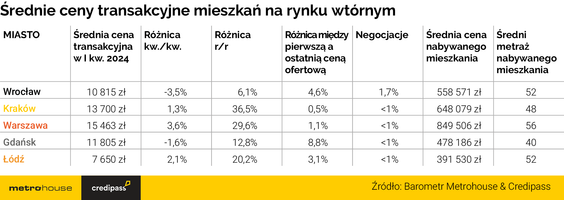 - W większości miast - i na rynku wtórnym, i na pierwotnym, w I kw. 2024 r. odnotowaliśmy kolejne wzrosty cen – mówi Marcin Jańczuk, współautor raportu „Barometr Metrohouse i Credipass". - Wydłuża się jednak czas sprzedaży mieszkań, co jest konsekwencją zarówno większej podaży, jak i mniejszego popytu na lokale w porównaniu z ostatnim kwartałem 2023 r.