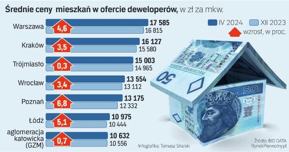 Według Pawła Grabowskiego, biorąc pod uwagę utrzymujące się na wysokim poziomie stopy procentowe, prognoza dotycząca cen mieszkań jest prosta. – Jeśli będzie nowy program dopłat do kredytów, ceny wzrosną. Jeżeli go nie będzie – spadną – mówi pośrednik z BIG Property. – Brak programu dopłat przy ograniczonym popycie zmusi sprzedających do obniżek cen, żeby pozyskać kupca. Zakładając, że stopy procentowe utrzymają się na porównywalnym poziomie, spadki cen mieszkań będą poniżej 10 proc. w skali sześciu miesięcy – prognozuje.