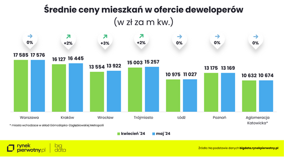 Mimo to, jak zaznacza analityk, stolica Wielkopolski wciąż jest tegorocznym liderem podwyżek. - Od początku roku średnia cena mieszkań wzrosła w tym mieście aż o 7 proc. – wskazuje. - W maju na podium wskoczył Wrocław, strącając z niego Warszawę. We Wrocławiu i Krakowie ceny nowych mieszkań w przeliczeniu na metr kwadratowy w ciągu pięciu miesięcy poszły w górę aż o 6 proc., w Łodzi – o 5 proc., a w Trójmieście – o 2 proc.
