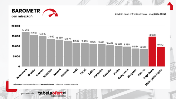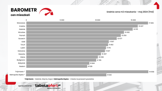 Inaczej było w Toruniu, gdzie w sprzedaży pojawiły się mieszkania w bardzo atrakcyjnych cenach na obrzeżach miasta, co spowodowało spadek średniej ceny o 2,8 proc., do ponad 11,4 tys. zł za metr.