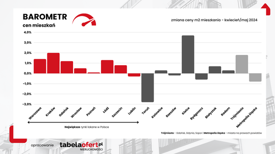 Eksperci serwisu Tabelaofert.pl podkreślają, że zmiany cen mieszkań wynikały przede wszystkim ze zmiany struktury oferty. - Jeśli do sprzedaży wchodziły droższe lokale, średnia cena rosła, czego najlepszym przykładem jest jej wzrost w Kielcach - o 3,7 proc. w ujęciu miesięcznym, do ponad 10 tys. zł za metr – wyjaśniają analitycy portalu. - To właśnie w tym mieście do sprzedaży weszły nowe duże osiedla w bardzo dobrych lokalizacjach.