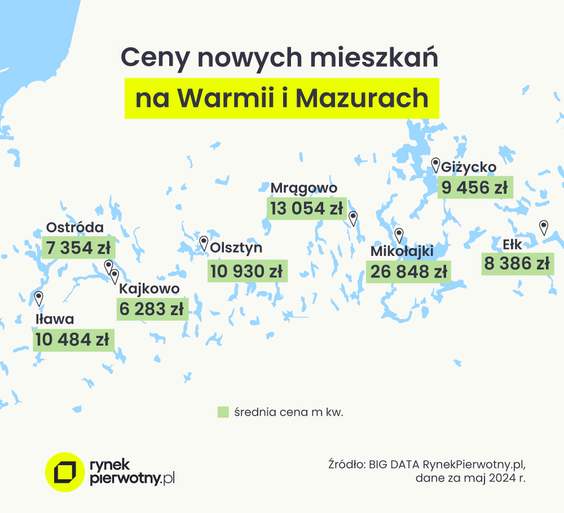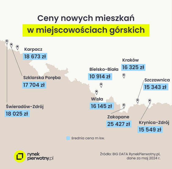 - Popyt przewyższający podaż mieszkań, wysokie koszty materiałów budowlanych i robocizny, kurcząca się oferta gruntów. Między innymi te czynniki wpływają na wysokość cen nieruchomości – mówią analitycy portalu RynekPierwotny.pl. - Wśród miast wojewódzkich niezmiennie najdrożej jest w stolicy. W maju średnia cena nowego lokalu w Warszawie wyniosła 17,6 tys. zł za mkw. Drogo jest też w Krakowie, gdzie przeciętna cena mkw. nowych mieszkań to 16,3 tys. zł. W Gdańsku jest to 15,3 tys. zł za mkw. Tak wysokie ceny przyprawiają o zawrót głowy. Okazuje się jednak, że są miasta i miasteczka, w których nawet warszawskie stawki nie robią wrażenia.