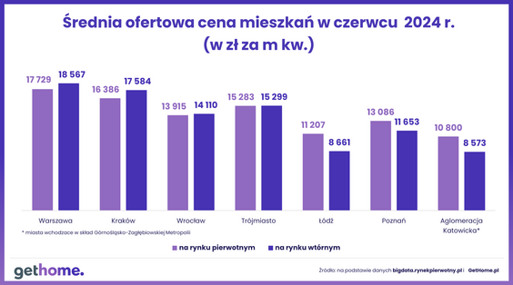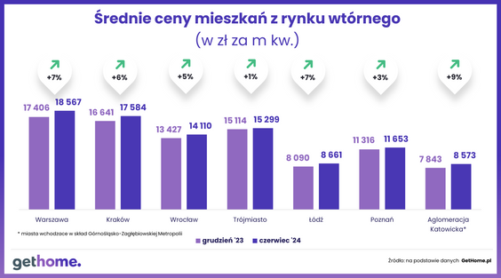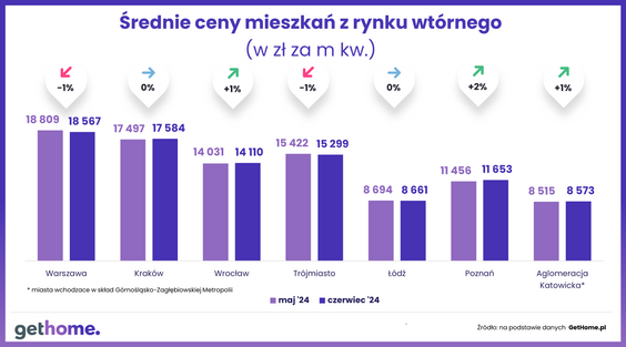 W Warszawie czerwiec przyniósł bardzo długo wyczekiwany przez wielu spadek średniej ceny metra kwadratowego mieszkań z rynku wtórnego. Także w innych metropoliach są już widoczne symptomy stabilizacji cen – wynika z danych portalu GetHome.pl.