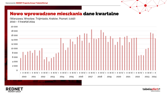 Autorzy raportu przypominają, że ostatni kwartał 2023 roku oraz pierwszy bieżącego były bez wątpienia jednymi z najbardziej dynamicznych okresów na rynku nieruchomości w ostatnich latach. – Zakończenie programu "Bezpieczny Kredyt 2 proc.” (w praktyce wyczerpanie się limitów) i pierwotny termin wejścia w życie nowych warunków technicznych (który ostatecznie został przesunięty na 1 sierpnia 2024) były głównymi czynnikami napędzającymi zarówno popyt, jak i podaż – zaznaczają analitycy. – W II kwartale bieżącego roku sytuacja diametralnie się jednak zmieniła.
