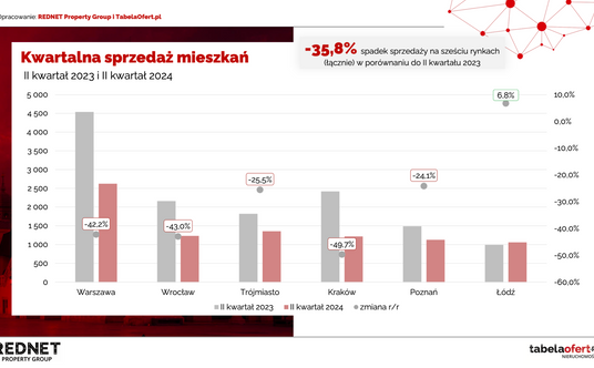 W ciągu kwartału sprzedaż mieszkań na sześciu rynkach (Warszawa, Wrocław, Trójmiasto, Kraków, Poznań, Łódź) spadła o 23 proc., a liczba lokali wprowadzonych do oferty zmalała o 13,6 proc.