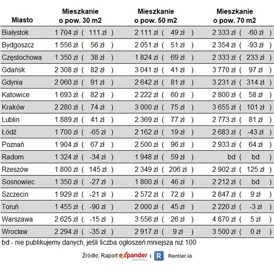 Biorąc pod uwagę wszystkie analizowane miasta, stawki we wszystkich były wyższe niż przed rokiem. Przeciętna zmiana to 4,6 proc.