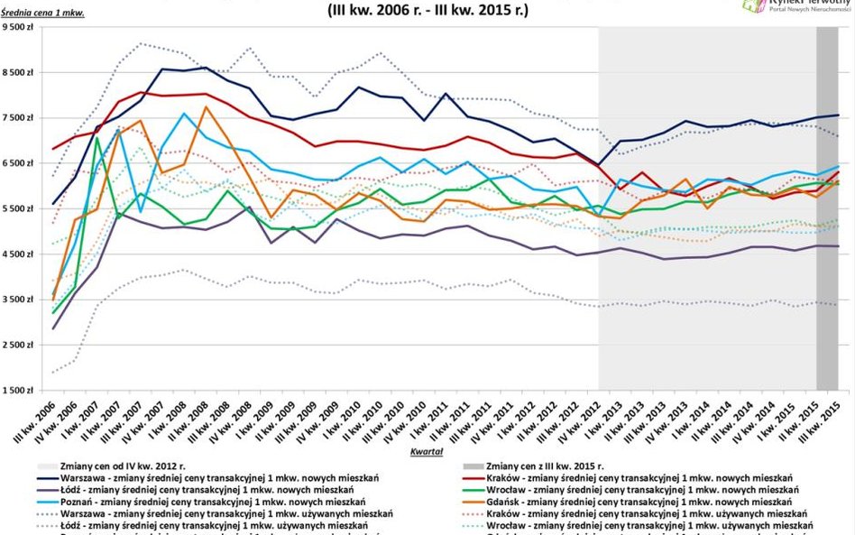 Od trzeciego kwartału 2006 roku do trzeciego kwartału 2015 r. nowe mieszkania w Stolicy Dolnego Śląska podrożały o 88 proc. (54 proc. z uwzględnieniem inflacji). Co ciekawe, Wrocław cechuje się najmniejszą podwyżką średniej ceny transakcyjnej na rynku wtórnym (nominalny wzrost o 11 proc. od trzeciego kwartału 2006 roku).