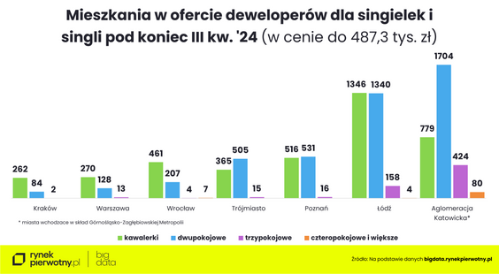 - Z Narodowego Spisu Powszechnego, który był przeprowadzony w 2021 r. wynika, że w naszym społeczeństwie jest prawdopodobnie ok. 2,8 mln jednoosobowych gospodarstw domowych. Są wśród nich także ludzie młodzi. Wielu marzy o własnych czterech kątach w którejś z dużych metropolii, gdzie najłatwiej o stabilną i dobrze płatną pracę – mówią analitycy serwisu RynekPierwotny.pl.