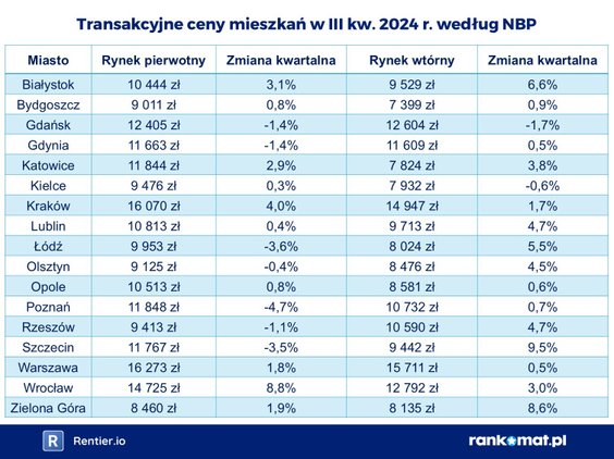 Jak pokazują dane serwisów Rankomat.pl i Rentier.io, rynek mieszkań po okresie wzrostów cen przechodzi w stan stabilizacji. Na razie miast ze wzrostami cen jest więcej (dziewięć) niż ze spadkami (osiem).