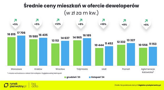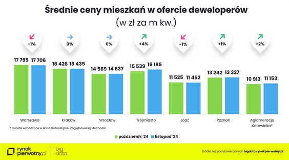 - Listopad po raz kolejny pokazał, że rynków mieszkaniowych największych miast nie można traktować jednakową miarą – podkreślają autorzy raportu serwisu RynekPierwotny.pl.