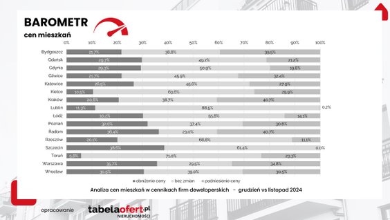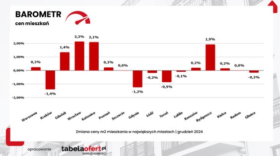 Z analiz wynika, że w grudniu w porównaniu z listopadem sprzedaż mieszkań na sześciu największych rynkach nie zmieniła się (symboliczny wzrost o 0,3 proc.). W czterech miastach (Gdańsk, Łódź, Poznań, Wrocław) wzrosła, a w Krakowie i Warszawie spadła.