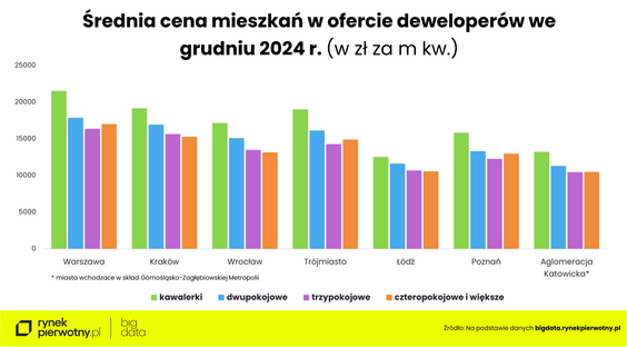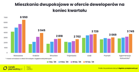 Dane serwisu RynekPierwotny.pl wskazują, że „dwójki” są najbardziej pożądane zarówno w stolicy, jak i w innych dużych miastach. W 2024 r. ich udział w łącznej sprzedaży wynosił 40 proc., podczas gdy kawalerek – tylko 15 proc.