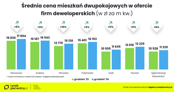 – Poszczególne metropolie mają rzecz jasna swoją specyfikę, ale we wszystkich bez wyjątku dwupokojowe mieszkania tradycyjnie mają największe wzięcie – zaznacza Marek Wielgo.