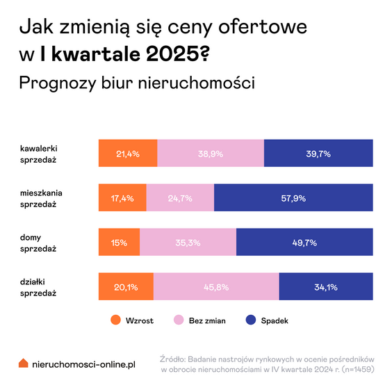 - Jest też duże prawdopodobieństwo, że w dalszym ciągu będziemy świadkami widocznego już od III kwartału 2024 roku urealniania cen ofertowych kawalerek z rynku wtórnego. W utrzymanie tego trendu w pierwszych miesiącach tego roku wierzy niemal 40 proc. przedstawicieli biur nieruchomości. To pozytywne wieści dla singli, którzy stanowią zdecydowanie najliczniejszą grupę kupujących mieszkania jednopokojowe – mówią przedstawiciele serwisu.