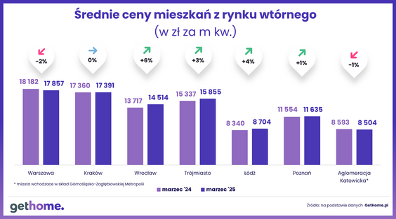 – Łódź ze średnią ceną 8,7 tys. zł za metr jest wciąż jedną z najtańszych metropolii. Na rynku wtórnym duży udział mają mieszkania w PRL-owskich blokach i starych kamienicach. Wzrost średniej ceny metra może być w dużej mierze efektem rosnącego odsetka lokali wybudowanych po 1989 r. – wyjaśnia Marek Wielgo, ekspert portalu GetHome.pl.