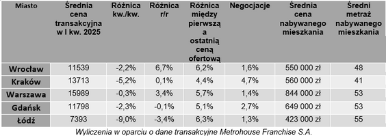 - W każdym z pięciu miast klienci kupowali lokale tańsze niż w ostatnim kwartale 2024 roku – mówi Marcin Jańczuk, ekspert Metrohouse. - Najbardziej stabilna sytuacja jest w Warszawie, gdzie średnia cena mkw. mieszkań nie przekracza 16 tys. zł. To wartość zbliżona do tej z ostatniego notowania – zaznacza.