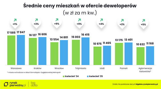 W stolicy, we Wrocławiu, Trójmieście, Łodzi i Poznaniu kwiecień był kolejnym miesiącem, który upłynął pod znakiem stabilizacji średniej ceny metra kwadratowego nowych mieszkań.
