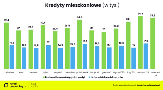 – Powodem spadku mogły być Święta Wielkanocne i perspektywa długiego majowego weekendu. Kwietniowy wynik można więc uznać za dobry, a to właśnie dzięki poprawie dostępności kredytów mieszkaniowych – komentuje Marek Wielgo, ekspert portalu RynekPierwotny.pl.
