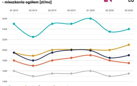 W Poznaniu mediana czynszu za jednopokojowe lokale to 1,3 tys. zł, tyle samo co w III kw. 2019 r. Nie zmieniły się też stawki za trzy pokoje (1,9 tys. zł). Czynsz za dwa pokoje wzrósł o 50 zł, do 1,65 zł tys. zł.