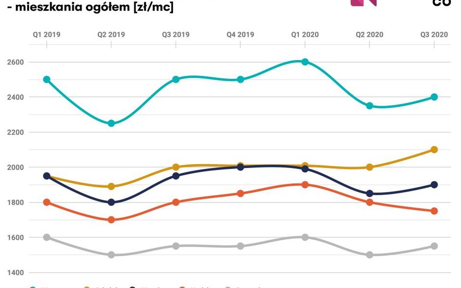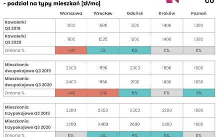 W Gdańsku podrożał najem wszystkich typów lokali. Czynsze za kawalerki w III kw. to 1,6 tys. zł (1,5 tys. zł przed rokiem), za „dwójki" 2,1 tys. zł (2 tys.), za „trójki" 2,6 tys. zł (2,5 tys. w III kw. 2019 r.).