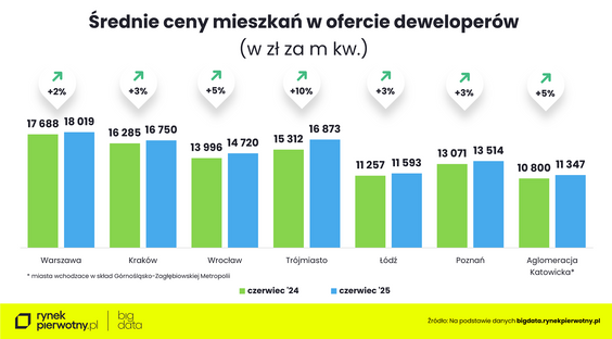 – Istotne, czy nowa podaż nadal przewyższała popyt. W drugim kwartale ten korzystny z punktu widzenia potencjalnych nabywców mieszkań trend utrzymał się w Krakowie, Wrocławiu, Trójmieście i w miastach Górnośląsko-Zagłębiowskiej Metropolii – zauważa Marek Wielgo. – W Warszawie, Łodzi i Poznaniu deweloperzy wprowadzili do sprzedaży mniej mieszkań niż sprzedali. Mimo to we wszystkich metropoliach wzrosła ich liczba w ofercie. Po prostu wróciły do niej mieszkania, z których część nabywców zrezygnowała.