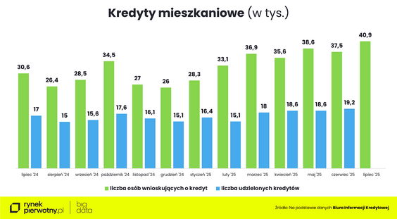 – Lipcowa, druga w tym roku, decyzja Rady Polityki Pieniężnej o obniżce stóp procentowych skutkowała wzrostem zainteresowania kredytami mieszkaniowymi. Biuro Informacji Kredytowej (BIK) podało, że w lipcu wnioski złożyło do banków ok. 40,9 tys. osób, czyli o 9 proc. więcej niż w czerwcu – podają analitycy.