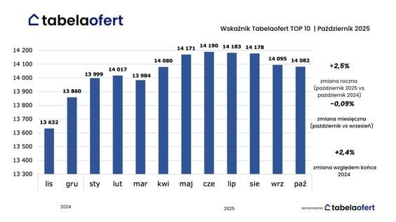 – Wynik z października pokazuje, że rynek mieszkań działa wciąż na bardzo wysokich obrotach. Popyt jest realny i ma solidne podstawy – ocenia Robert Chojnacki, wiceprezes i założyciel portalu mieszkaniowego Tabelaofert.pl.