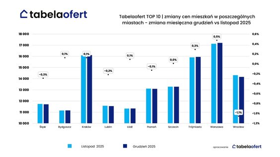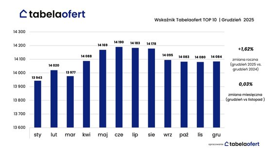 – Choć grudzień obfitował w wyjątkowo wiele dni wolnych, zainteresowanie zakupem mieszkań nie zmalało – wynika z danych barometru cen mieszkań opracowanego przez portal Tabelaofert.pl. Sprzedaż nowych lokali jest stabilna, w porównaniu z listopadem spadła zaledwie o 0,9 proc. Ceny praktycznie się nie zmieniły.