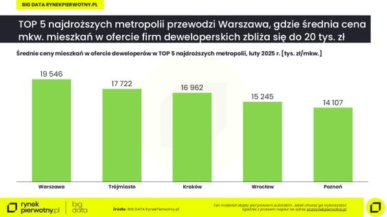 Zwraca uwagę, że skalę zróżnicowania cen najlepiej pokazuje rynek warszawski. Najwyższe ceny są w Śródmieściu (ponad 40 tys. zł/mkw.) i na Woli (ok. 32 tys. zł/mkw.). – Wystarczy jednak przenieść się na drugi brzeg Wisły, by zobaczyć zupełnie inny obraz rynku. Na Białołęce, w Wawrze czy Rembertowie średnie ceny oscylują wokół 13,5 tys. zł za metr, co czyni te dzielnice jednymi z najbardziej dostępnych w stolicy – mówi Marek Wielgo.