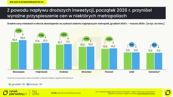 – Z rynku znikają przede wszystkim najtańsze mieszkania, a w ich miejsce pojawiają się głównie inwestycje z wyższej półki cenowej. To właśnie ten mechanizm odpowiada za wyraźne przyspieszenie wzrostu średnich cen na początku 2026 r. – wyjaśnia Marek Wielgo.