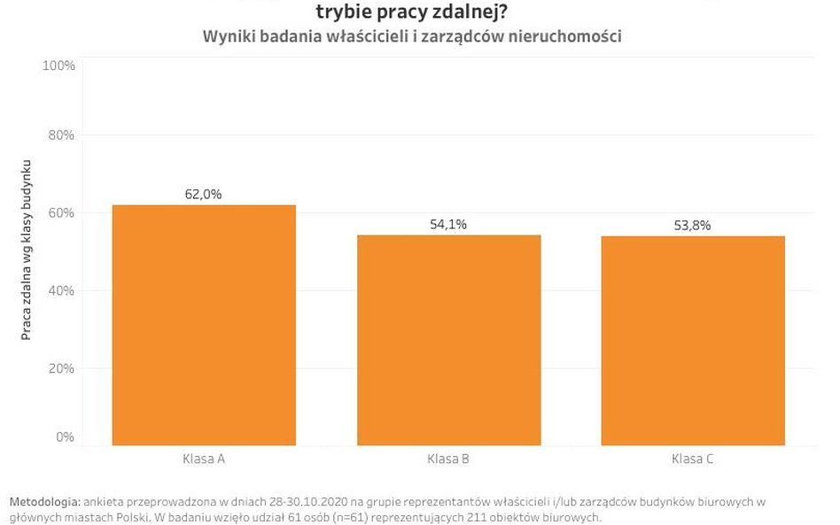 Ponad połowa firm w badanych biurowcach wprowadziła system pracy zdalnej. Pracownikom mierzy się też temperaturę.