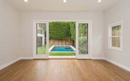 Dom ma 185 metrów kwadratowych powierzchni w tym cztery sypialnie, trzy łazienki, salon, kuchnię i jadalnię. W sypialniach są pojemne garderoby a dzięki tzw. francuskim oknom, które sięgają od podłogi do sufitu można z głównej sypialni wyjść bezpośrednio do ogrodu, w którym jest basen oraz studio w oddzielnym budynku, który pierwotnie była garażem na dwa samochody. Ogród otoczony jest wysokim murem dającym całkowitą prywatność mieszkańcom.