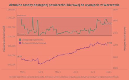 Z analiz REDD wynika, że w drugim kwartale roku zasoby dostępnych modułów biurowych w Warszawie przyrastały w średnim tempie 22 biur tygodniowo, co w ciągu trzech miesięcy wygenerowało ok. 12 tys. mkw. powierzchni biurowej, która nie została objęta nowymi umowami.