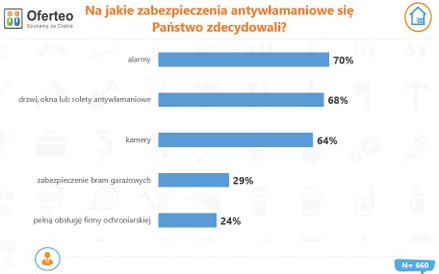 Inwestorzy, którzy decydują się na zainstalowanie dodatkowych zabezpieczeń, najczęściej wybierają alarmy. Oferteo.pl powołuje się na statystyki Komendy Głównej Policji. – Pokazują one, że w Polsce z roku na rok coraz częściej dochodzi do kradzieży z włamaniem. W 2019 roku takich incydentów zgłoszono aż 71 186, podczas gdy w roku 2017 było to 65 514 przypadków. Co niepokojące, w ubiegłym roku sprawców przestępstwa udało się wykryć tylko w 46 proc. przypadków. Oznacza to, że większości spraw nie udaje się szczęśliwie rozwiązać, a przestępcy nie zostają odnalezieni – mówią eksperci portalu.