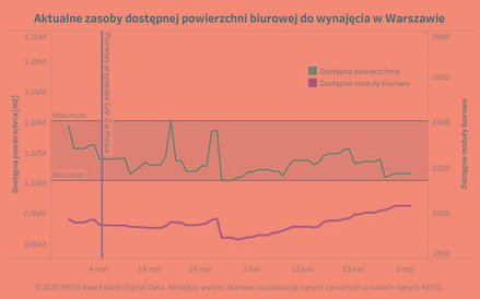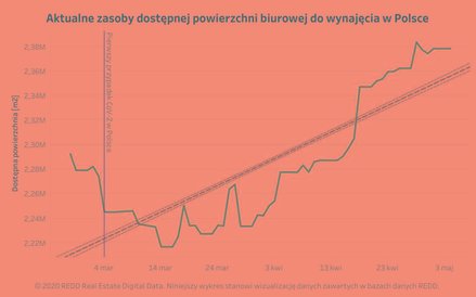– Zasoby dostępnej powierzchni biurowej w całej Polsce systematycznie rosną już od połowy marca – podkreśla cytowany w komunikacie Piotr Smagała, dyrektor zarządzający REDD. - Największy wzrost obserwujemy jednak od początku kwietnia. Na koniec miesiąca wskaźnik wolnych biur w przeliczeniu na powierzchnię wyniósł ponad 2,38 mln mkw. To oznacza wzrost od 1 kwietnia aż o 140 tys. mkw. – podaje.