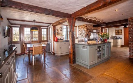 Zabytkowy dom ma 9 sypialni, cztery łazienki, cztery salony oraz wspaniałą jadalnię ozdobioną unikalnymi freskami. Najstarsza cześć posiadłości i domu pochodzi z XV-wieku i została wzniesiona techniką tzw. muru pruskiego. Część zabudowań została wzniesiona w zeszłym wieku, a główny dom gruntownie wyremontowany, dzięki czemu ma nowoczesną kuchnie i łazienki. Dobudowana, nowa część została wzniesiona w stylu georgiańskim (1714 - 1830).