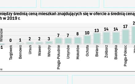Średnio ok. 10 proc. wyniosła w 2019 r. różnica między cenami ofertowymi a transakcyjnymi lokali liczona dla całej Warszawy.