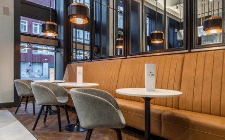 Praski Radisson Blu oferuje dwa rodzaje pokojów. W oficynie na tyłach budynku są pokoje w standard, zaś w reprezentacyjnym, zabytkowym budynku głównym ulokowano apartamenty oznaczone jako „heritage". - Wszystkie zachowują ten sam styl. Jego wyróżniające cechy to ciemnoniebieski, morski kolor ścian i tapicerek połączony z odcieniami szarości, elementami z ciemnego drewna oraz meblami z marmurowymi i skórzanymi wykończeniami - opisują przedstawiciele biura Iliard Architecture & Project Management.