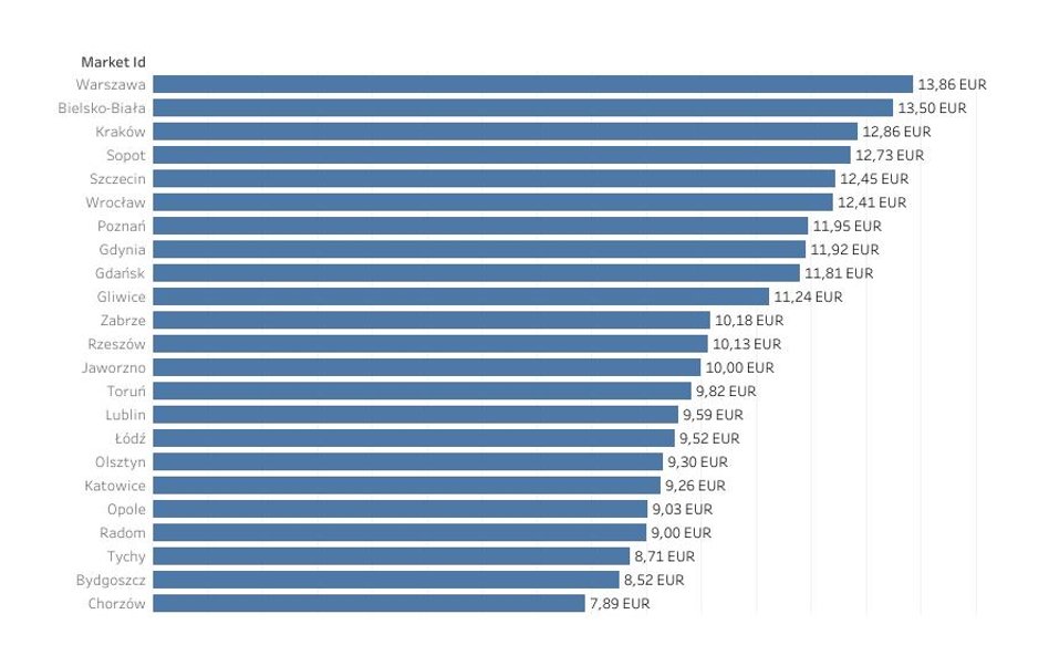 – Obecnie najwyższy średni wyjściowy czynsz odnotowujemy w Warszawie – to 13,86 euro za mkw. biur. Na drugim miejscu wśród rynków regionalnych niespodziewanie znalazła się Bielsko-Biała. Wyjściowy czynsz za biura to 13,50 euro za mkw. Bielsko-Biała to mały rynek biurowy, składający się głównie z nowoczesnej powierzchni. Stąd tak wysokie średnie stawki najmu – tłumaczy Piotr Smagała z REDD. - Następne na liście są Kraków (12,86 euro za mkw. biur) i Sopot (12,73 euro za mkw.).