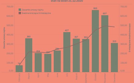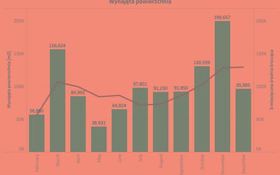 Z analiz tej platformy wynika, że czwarty kwartał będzie również rekordowy pod względem wynajętej powierzchni. - Do dziś, 21 grudnia, w ostatnim okresie roku zarejestrowaliśmy transakcje na ponad 420 tys. mkw. – podaje dyrektor.