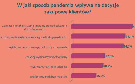 Badania ankietowe wśród pośredników przeprowadziła sieciowa agencja Metrohouse (9-14 października). W ankiecie wzięli udział agenci Metrohouse z całej Polski reprezentujący rynki o różnej wielkości. - Pierwsze pytanie dotyczyło wpływu pandemii na zmianę zachowań klientów. W tym przypadku zdania są podzielone. Równo połowa ankietowanych przyznała, że pandemia ma umiarkowane znaczenie dla poszukujących mieszkań, ale jednocześnie 26,8 proc. uznaje Covid-19 za istotny czynnik wpływający na potencjalnych nabywców – mówi Marcin Jańczuk, dyrektor w Metrohouse.