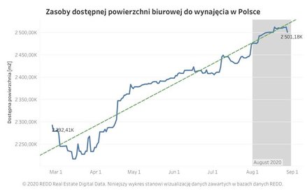 Najwięcej sierpniowych transakcji na rynku biur zarejestrowano w budynkach klasy A. Rynek biurowy nie miał urlopu – komentują analitycy REDD. Z danych tej firmy wynika, że na polskim rynku dostępnych jest 4542 modułów biurowych o łącznej powierzchni 2,50 mln mkw. W sierpniu rynek zasiliły 52 moduły biurowe, które nie zostały jeszcze objęte nowymi umowy najmu. Tym samym zasoby wolnej powierzchni zwiększyły się o 25 tys. mkw.