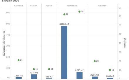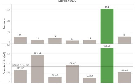 - Spośród ponad 25 rynków regionalnych monitorowanych przez REDD największy negatywny bilans wynajętych i zwolnionych biur w sierpniu zanotowały Wrocław (-23,214 tys. mkw.), Warszawa (-18,126 tys. mkw.) i Łódź (-6,434 tys. mkw.) — wylicza Piotr Smagała, dyrektor zarządzający REDD. - Mimo negatywnego bilansu w Warszawie, stolica jest liderem rynków regionalnych pod względem nowych umów najmu, gdzie zawarto ponad 55 proc. (154 z 280) ze wszystkich zarejestrowanych w sierpniu.