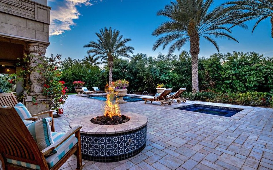 Całą posiadłość ma powierzchnię niespełna 2 tys. metrów kwadratowych a w zadbanym ogrodzie jest nie tylko taras, ale także basen, jacuzzi oraz otwarty grill-palenisko.