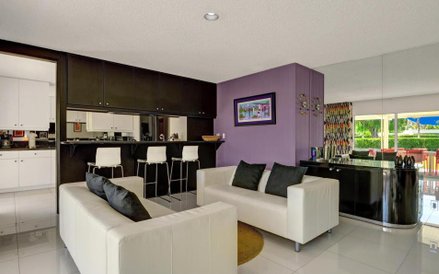 Wystrój domu jest utrzymany w żywych kolorach z wieloma akcentami odwołującymi się do poprzednich właścicieli, m.in. zasłonami z Myszką Miki.