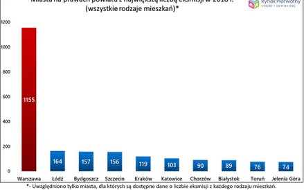 Uwagę zwraca dystans między Warszawą a pozostałymi miastami. Duża liczba eksmisji w stolicy (1155 przez cały 2018 r.) po części jest związana z wielkością tego miasta. Warto również podkreślić, że w stolicy były opróżniane niemal same mieszkania gminne i spółdzielcze. Liczba warszawskich eksmisji z podziałem na rodzaj lokalu przedstawia się następująco: